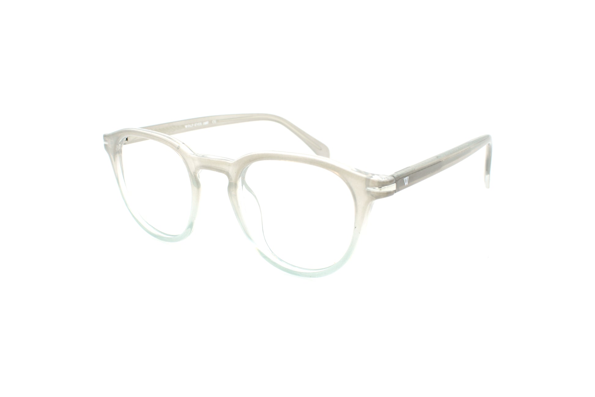 These are eyeglasses with a classic, rounded frame shape. The frame has a medium thickness. The temples are straight and connect to the frame at the sides. There is a small, possibly metallic, detail or logo present on the temple near the hinge. The lenses are round and appear to be non-prescription or demo lenses. The overall design is timeless and versatile.
